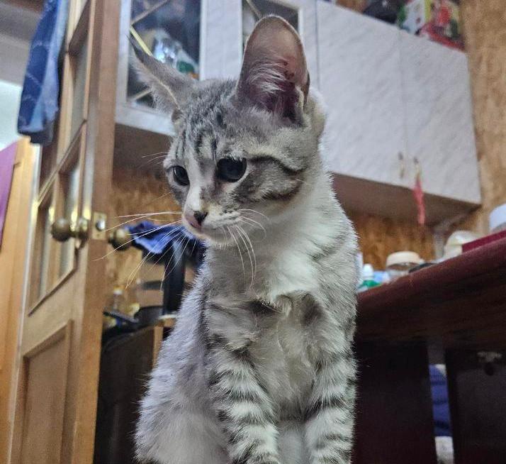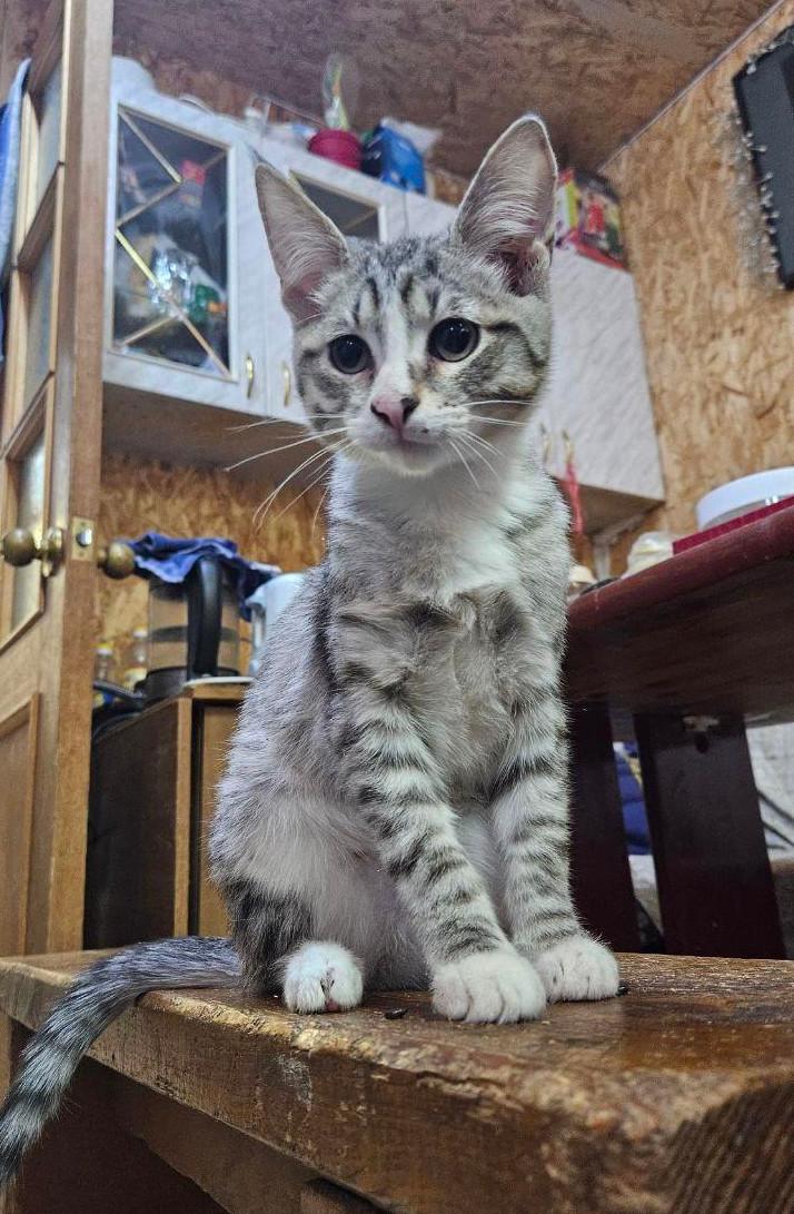В Тюмени четырехмесячный котенок ищет новых владельцев. Осенью его обнаружили в подъезде с серьезной черепно-мозговой травмой, после чего потребовалось продолжительное лечение.