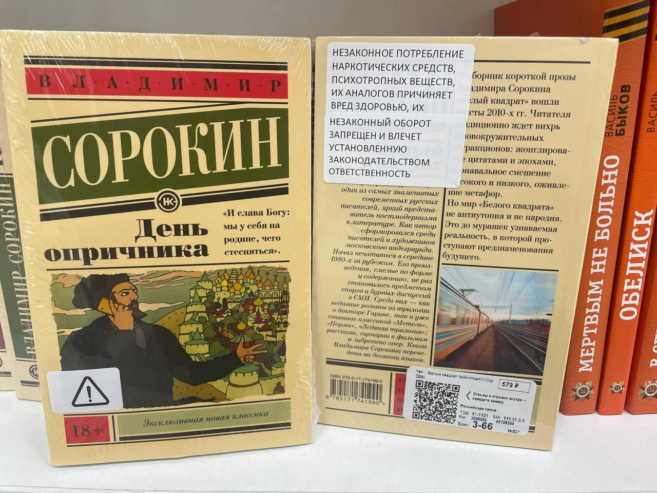 Книги Владимира Сорокина, отмеченные специальной маркировкой.