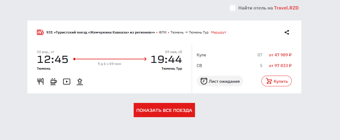 РЖД анонсировала уникальный железнодорожный тур под названием «Жемчужина Кавказа». Поезд отправится из Тюмени на Северный Кавказ, сообщается на сайте компании.
