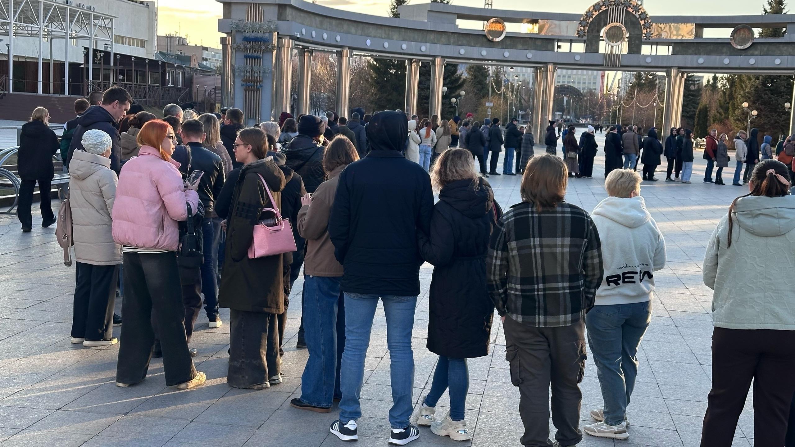 У спорткомплекса «Центральный» на Цветном бульваре в Тюмени образовалась длинная очередь. Горожане продолжают подходить к зданию и ожидать на улице.