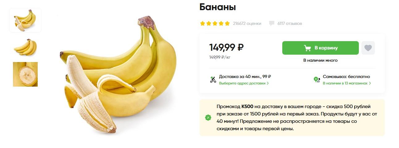 В «Перекрестке» бананы оцениваются в 150 рублей за килограмм.
