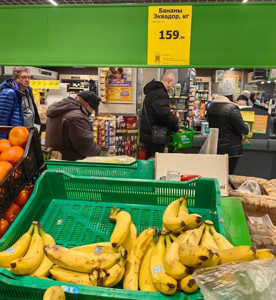 Эквадорские бананы в «Монетке» по цене приблизительно 160 рублей за кг.