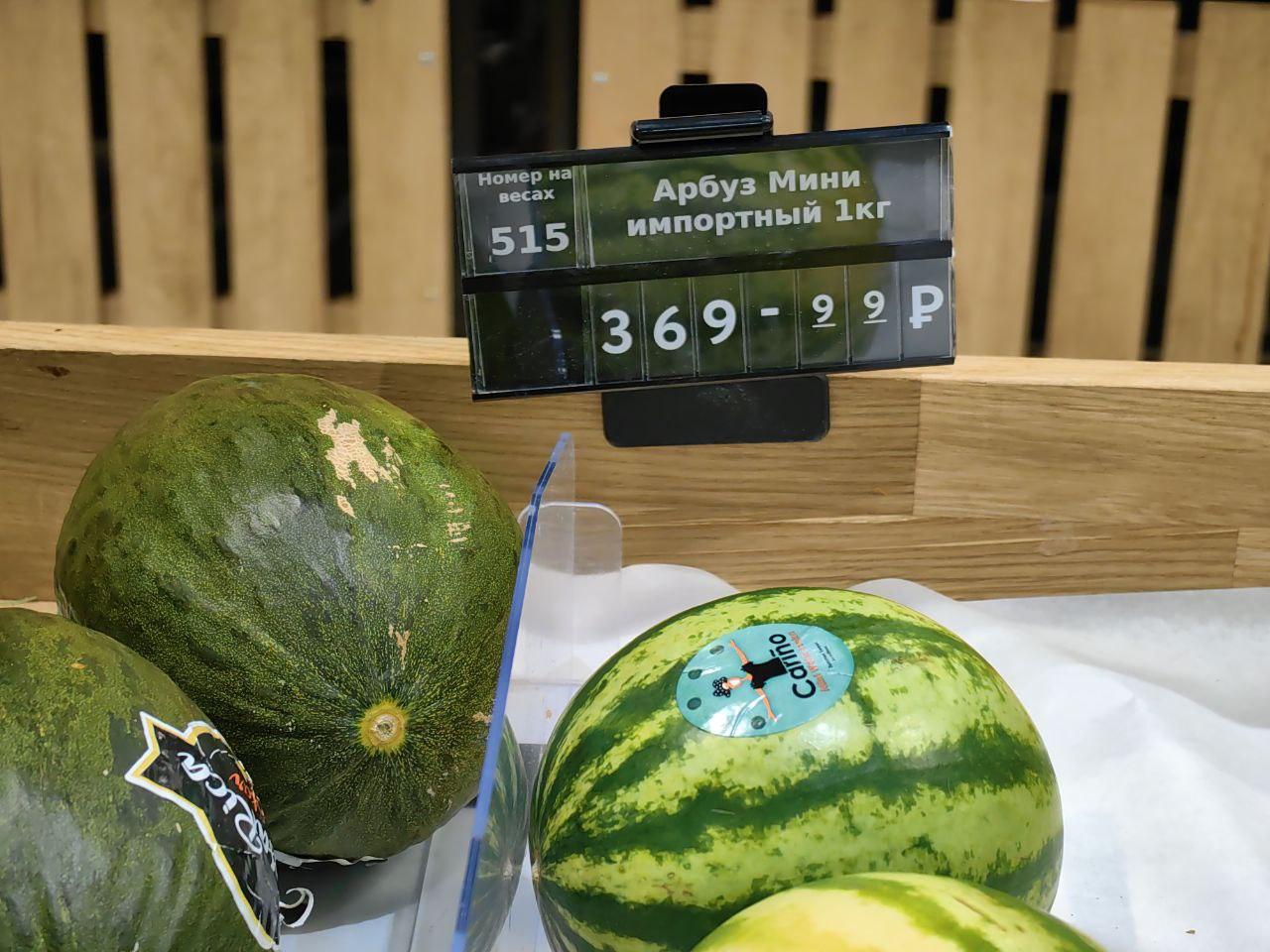 Стоимость таких арбузов составляет 369 рублей за килограмм, что является довольно высокой ценой.