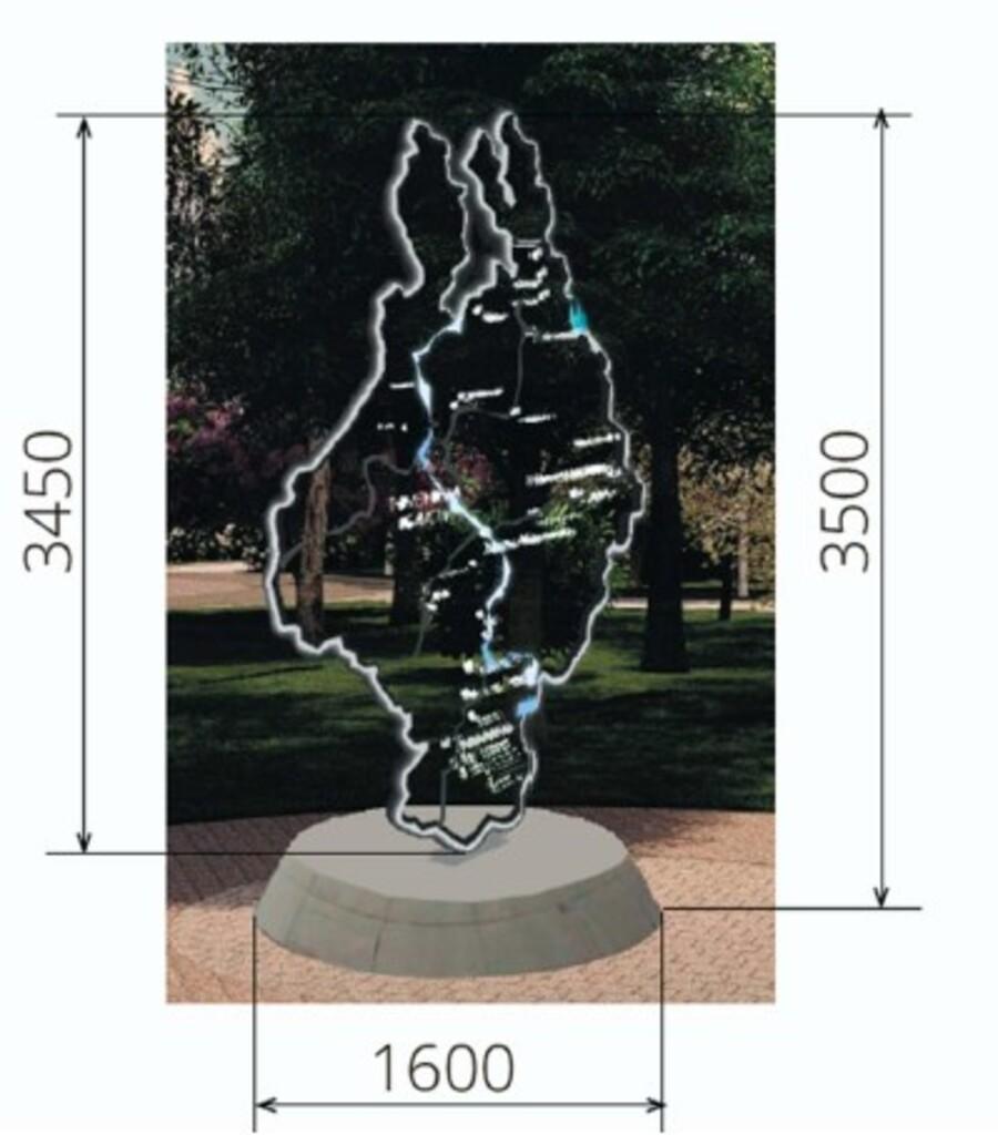 Макет нового памятника с рельефным изображением карты Тюменской области.