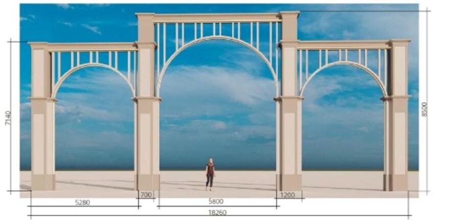 Архитектурная визуализация проектируемой входной группы на площадь.