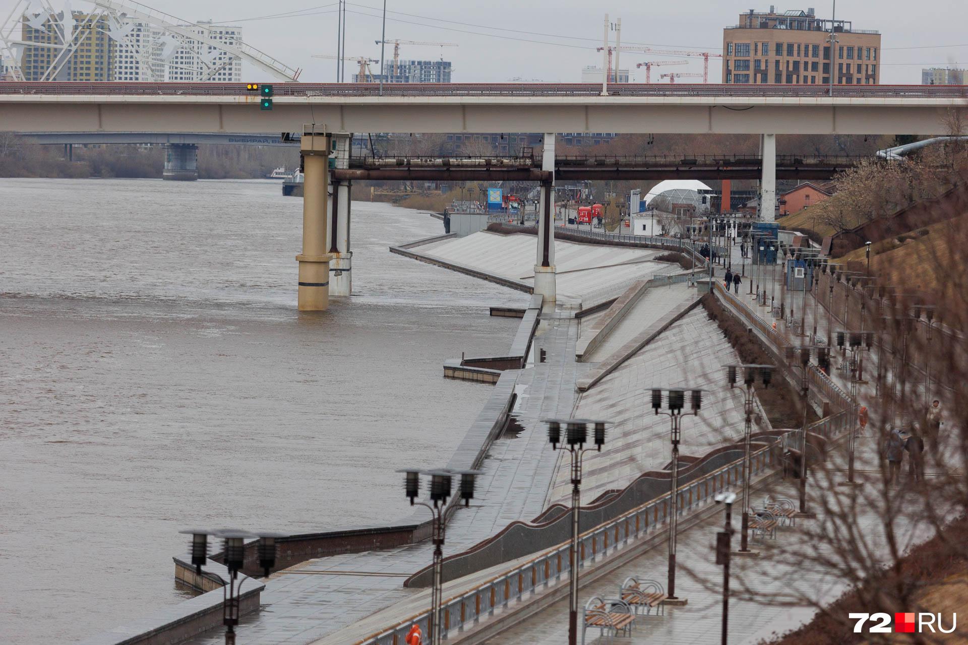 - Набережная реки Тура частично ушла под воду из-за стремительного подъема уровня.