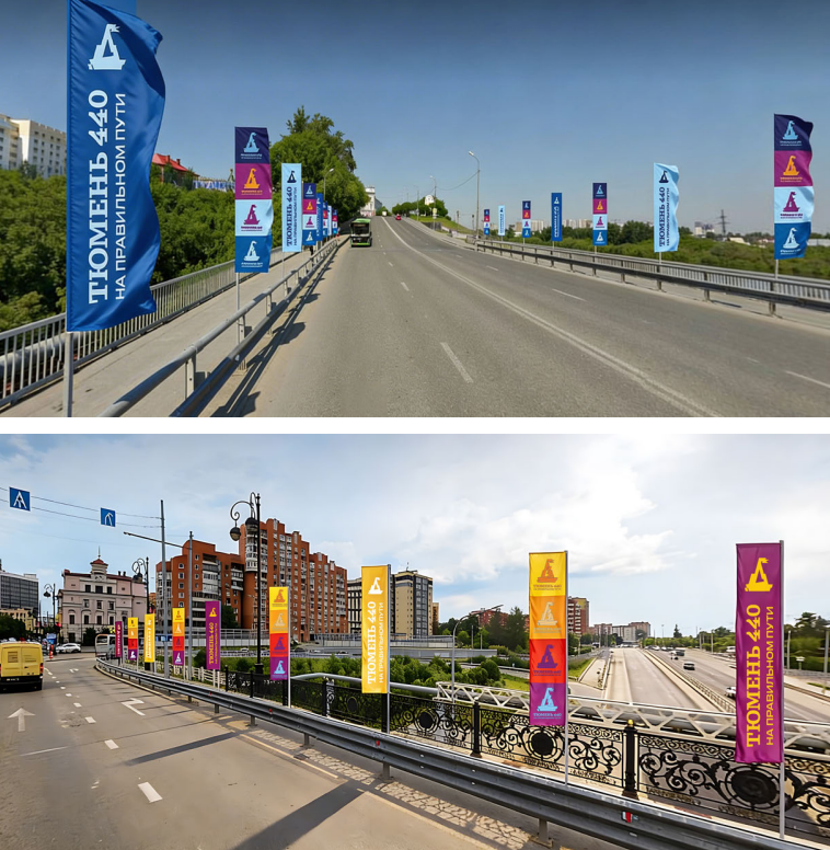 Центр стратегического развития «Сибирь» заявил: «Праздничная айдентика „Тюмень 440. На правильном пути“, посвященная юбилейному Дню города в 2026-м году, затронет все сферы городской жизни: появится в транспорте, на афишах и баннерах, в торговых центрах, в эфирах телеканалов, в средствах массовой информации, будет сопровождать большинство культурных, спортивных, социально значимых мероприятий».