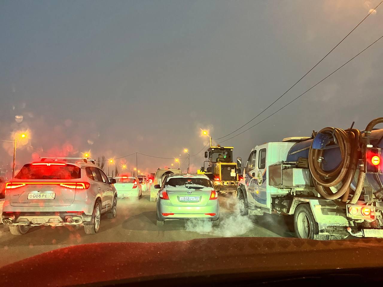 Утром в пятницу, 19 декабря, на улице Алебашевской и Профсоюзном мосту в Тюмени сформировалась крупная пробка. О возникших затруднениях сообщили очевидцы.