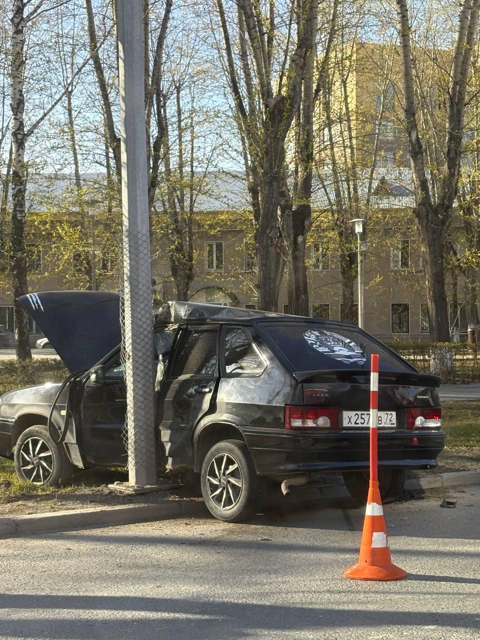 Легковушка врезалась в столб в центре Тюмени