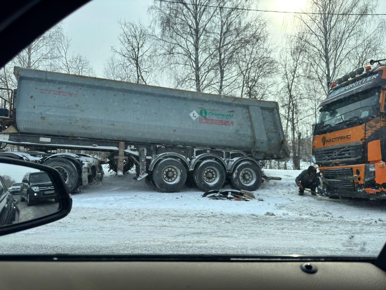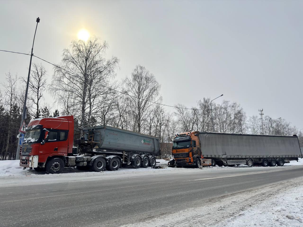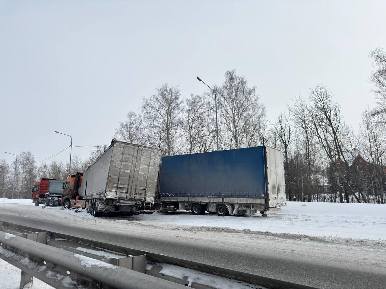 Крупное дорожно-транспортное происшествие с участием нескольких грузовиков произошло в Тюмени на Московском тракте. Аварию обнаружили в ночь на 9 марта.