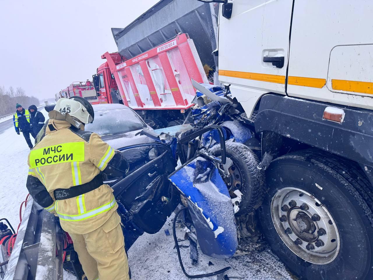Трое погибли в массовой аварии на трассе под Тюменью