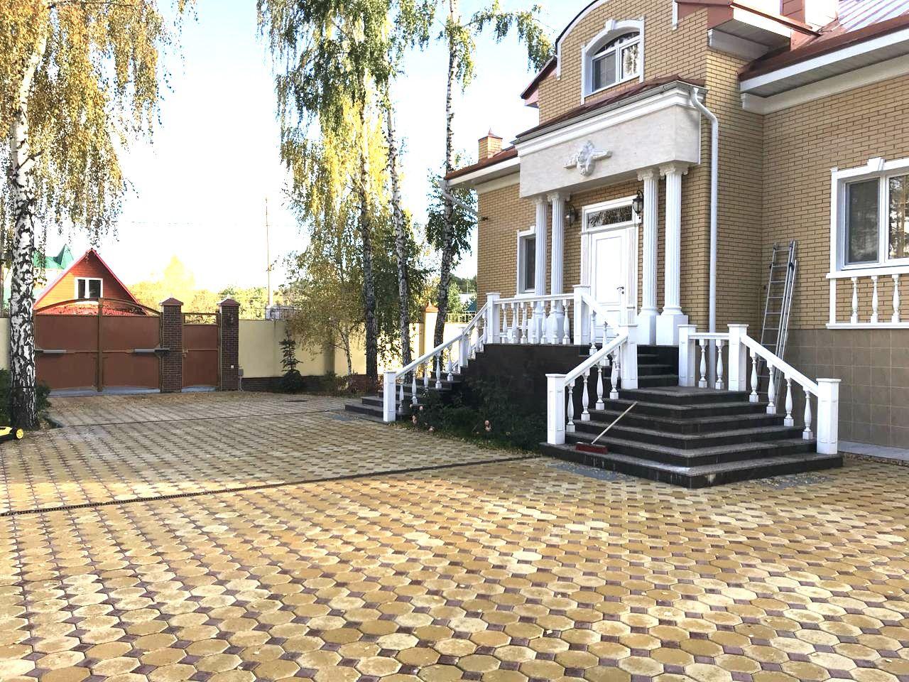 Участок имеет ландшафтный дизайн, все постройки соединены дорожками. Здесь расположены беседка с барбекю, детский городок, спортивная зона, теплица, огород, а также плодовые, лиственные и хвойные насаждения. По периметру установлен капитальный кирпичный забор, и территория находится под охраной.