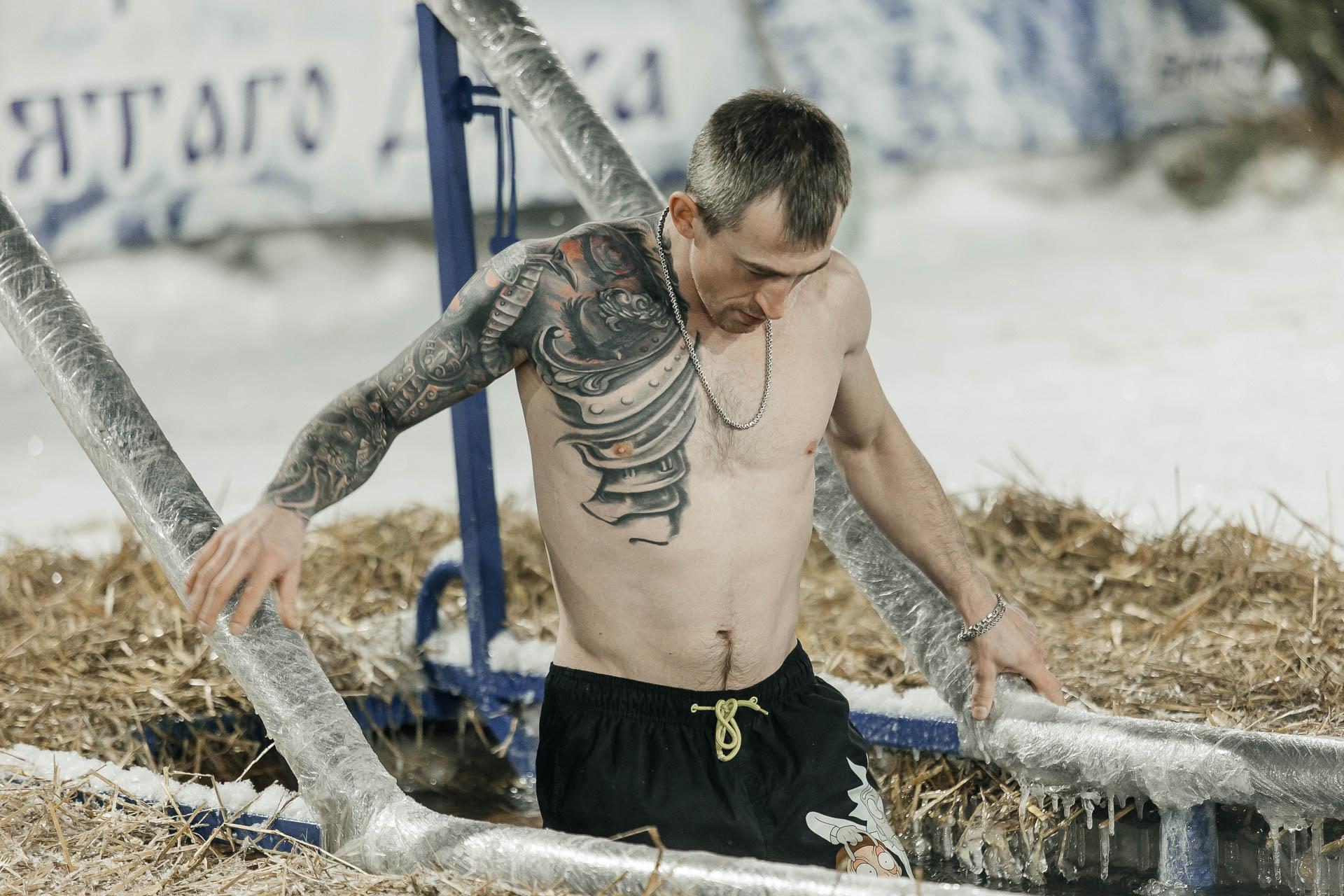 Морозная погода не стала препятствием для тюменцев. Раздевшись, они задерживали дыхание и погружались в ледяную воду. Во время этого обряда становились видны различные татуировки. Значение этих изображений отличается: одни придают им глубокий смысл, для других это просто декоративные элементы.