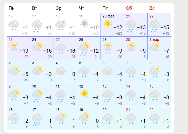 Аналогичные прогнозы опубликованы в сервисах «Яндекс» и «ФОБОС». Согласно их информации, устойчивое потепление с плюсовыми температурами наступит во второй половине марта, в 20-х числах. До этого периода тюменцев ждут снег и дождь.