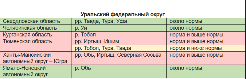 В таблице приведена предварительная оценка отклонения ожидаемых максимальных уровней воды во время половодья от нормы.