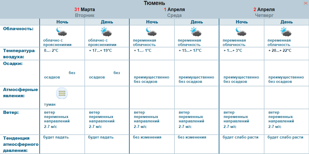 Синоптики Обь-Иртышского УГМС прогнозируют значительное потепление в Тюмени в ближайшие дни. Пик повышения температуры ожидается в четверг, 2 апреля, когда воздух прогреется до +20…+22 градусов.